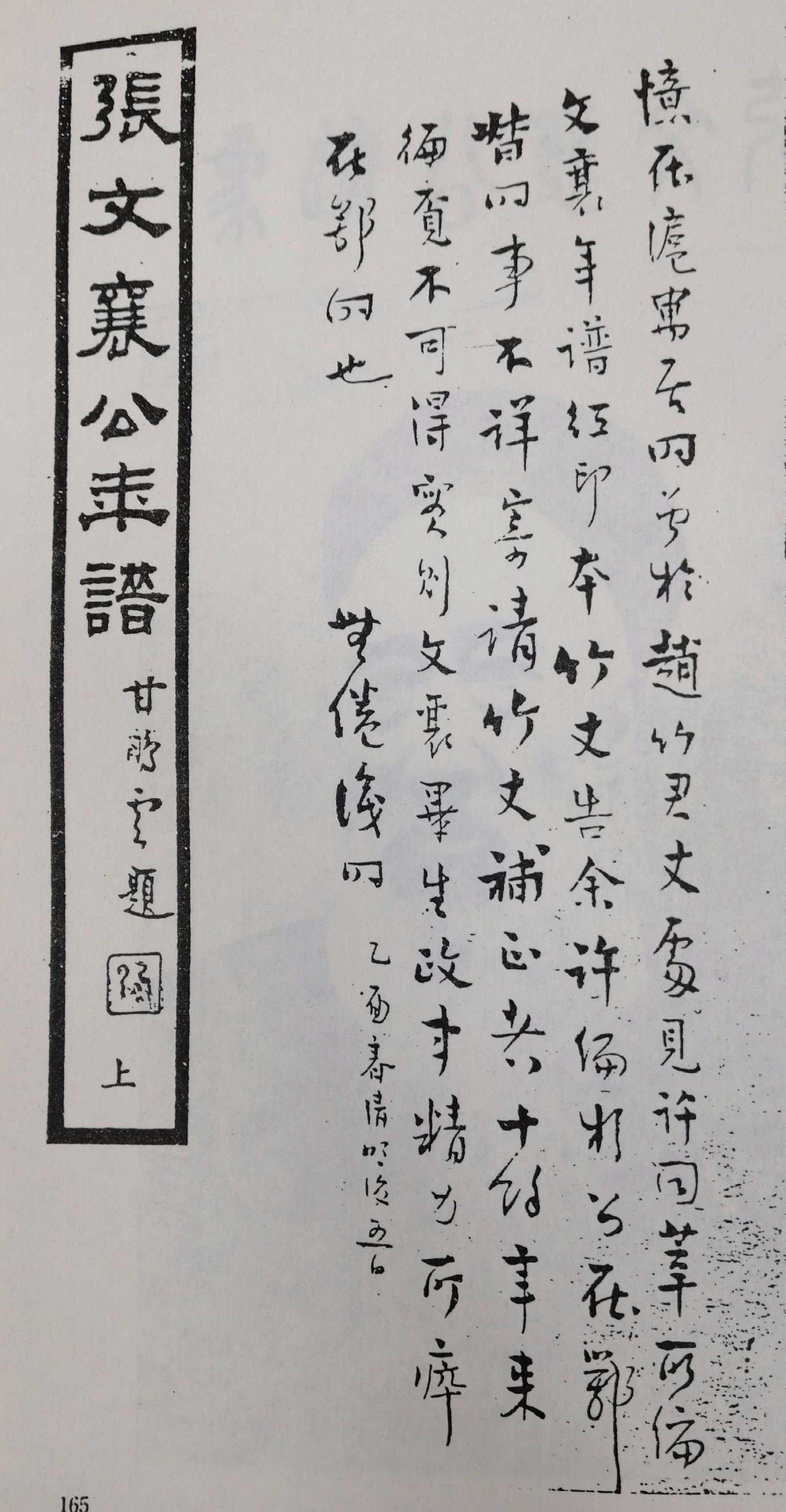 甘云鹏所作胡钧版《张文襄公年谱》之封面识语:“忆在沪寓居时,曾于赵竹君丈(赵凤昌)处见许同莘所编文襄年谱油印本。竹君告余,许编于公在鄂督时事不详,寄请竹君补正者,十余年来遍觅不可得,实则文襄毕生政事经历所萃在鄂时也。乙酉(1945)春,清明后五日。”