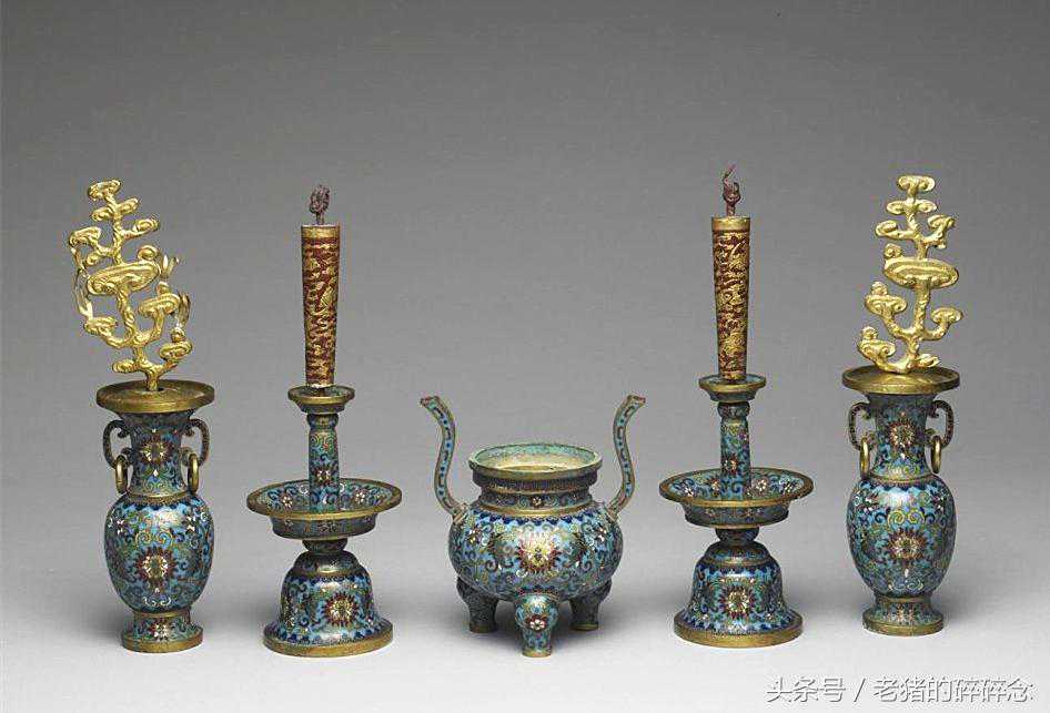五供是供奉或祭祀用器,一指用五种受用的供物供神,又称五献,即花、香、灯、酥油、食物,以求神佛保佑。后因供器一套五件,计有香炉一、花觚二、烛台二而合称五供。多于佛或先人的灵台前供奉,又名“五供养”、“五具足”或“五供一堂”。其造型多仿制青铜器,在乾隆、道光年间极为盛行。佛教五供是随佛教礼仪制度的形成逐渐演化而来的,是人们用香炉、烛台和花觚来敬佛、礼佛的一种礼仪形式。佛教里讲究“三”这个数字,而“香炉、烛台、花觚”代表了“三具足”,三者缺一不可。根据佛教仪式,用五供供佛表示对佛、菩萨的恭敬和礼拜。