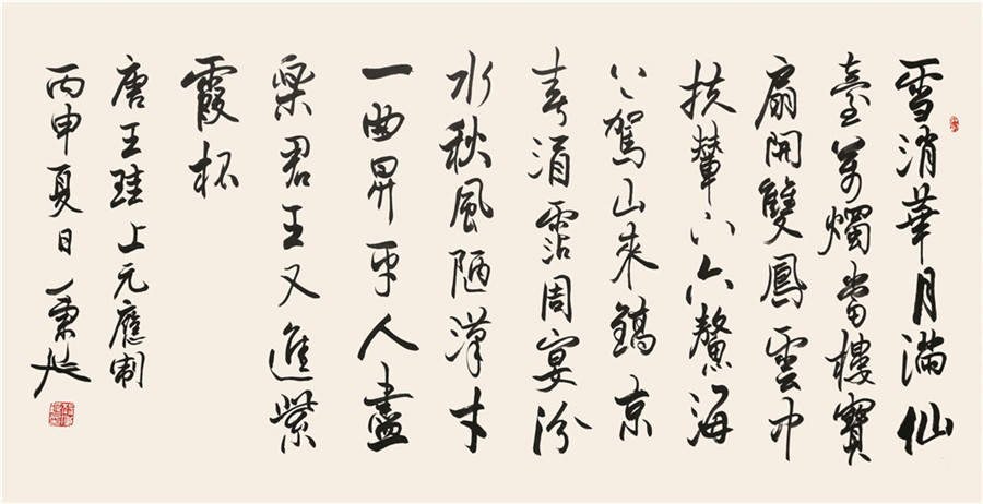 项穆在《书法雅言》中称:“夫人灵於万物,心主於百骸。故心之所发,蕴之为道德,显之为经纶,树之为勋猷,主之为节操,宣之为文章,运之为字迹……但人心不同,诚如其面,由中发外,书亦云然。”显见,书家必须要修炼并提高综合学养。很多书家、学者都主张书法家应吟诗、做诗,即便不书写自己的诗作,也要有诗人的胸怀。诚然,其人有文,其书亦必有文。书家书作有文,文以载道,以书焕采。书写的文本之辞,表面上是自作之文,或是辑录他人之文,但其内在便含蓄了书者品操的修行、心灵的陶养、意志的凝练、节律的跳荡、文思的涵化,含蓄了许多难以细说的现实与浪漫,自然与人生,历史与未来的思味。这一切不一定就等于书法,却在艺术心理上不期而遇地暗暗地化育着书法,升华着书法。以书焕文之采,以文表书之道,在书法创作中最终实现“激扬生命之精神”。