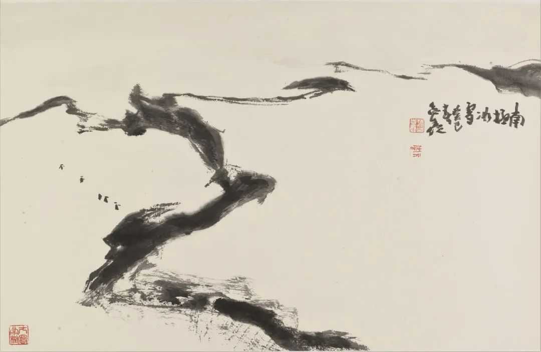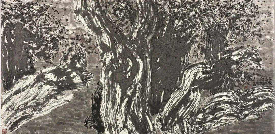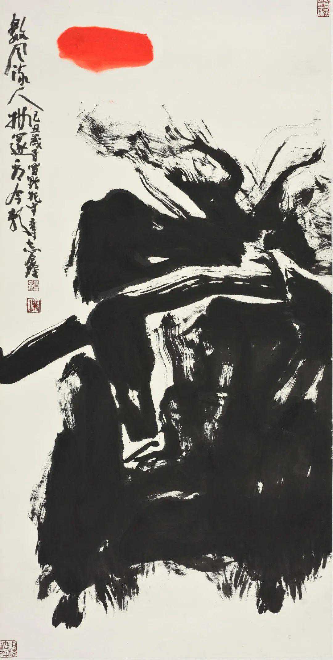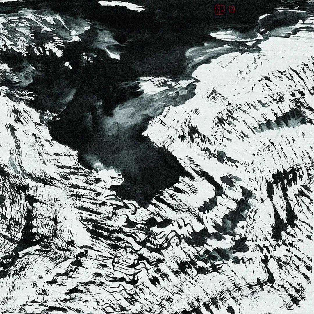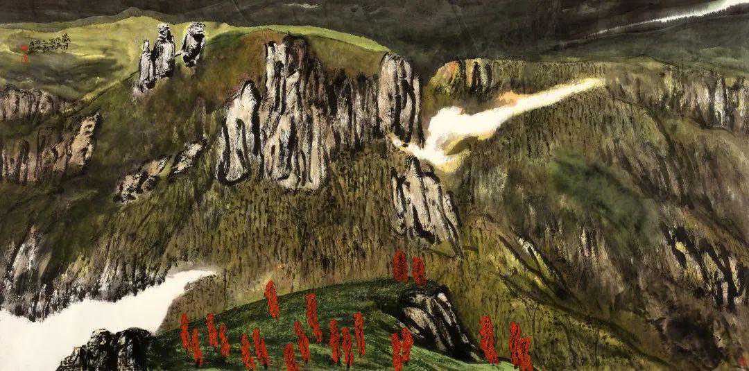 蒋老师的山水画,追求的是旷野莽原的雄奇野性和高山仰止苍凉悲壮的美。他的创作寄情大荒莽原又通天地神奥,遣笔运墨任性慷慨,造境构意磊落驰骋,气象奇伟宏富粗犷,形成了他自家卓然不群的美学品格。他以自己不断创新的创作实践,推动着中国山水画由传统形态向现代形态的转化。