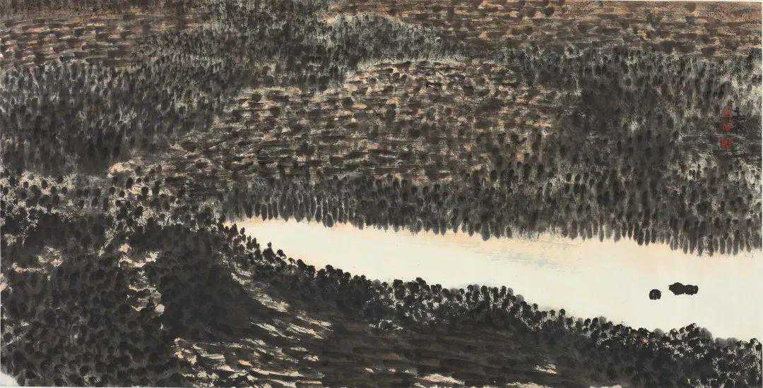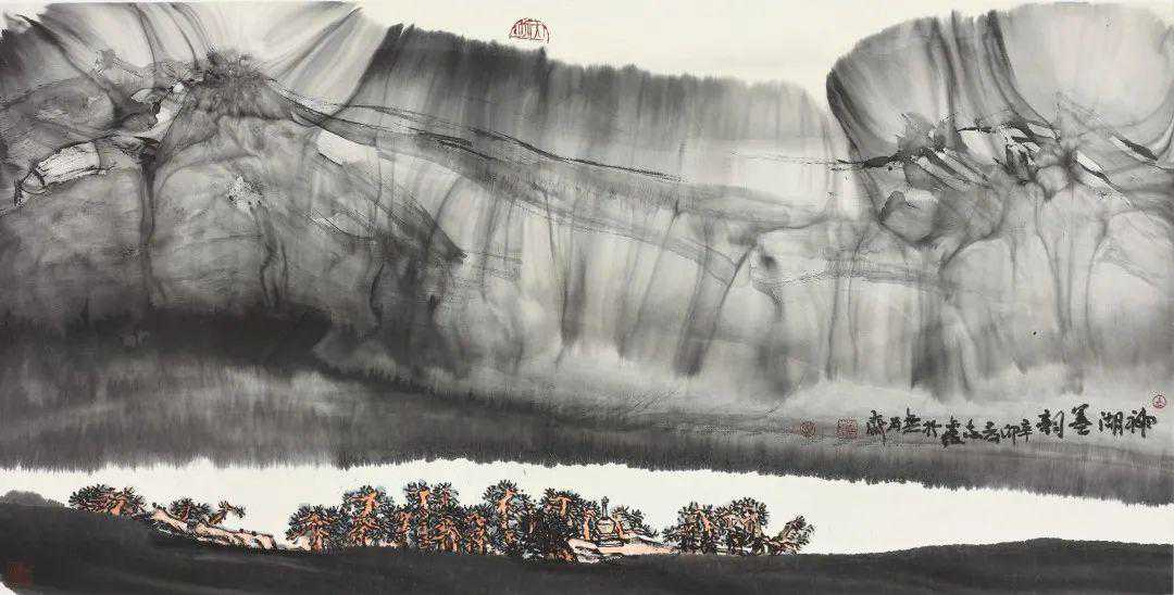 《神湖墨韵》68cmX138cm2011年