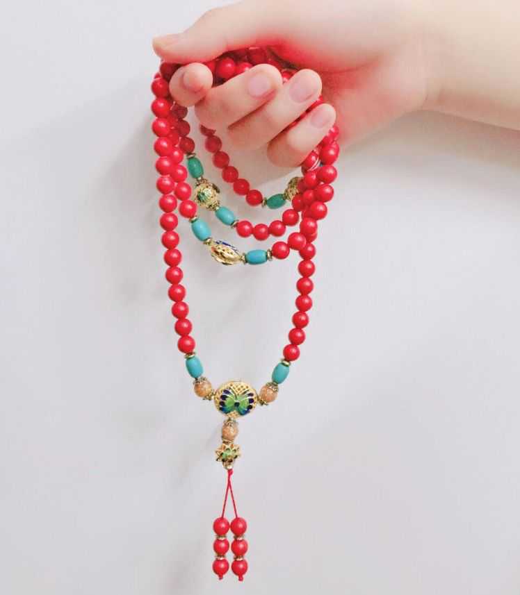 但是在藏地对于念珠所用的绳子要求就比较严格。一般用棉线制成,多用红颜色。以独股或者三股为绳而穿珠。也有用皮绳来穿珠的,但这是个例,一般不会这样做。
