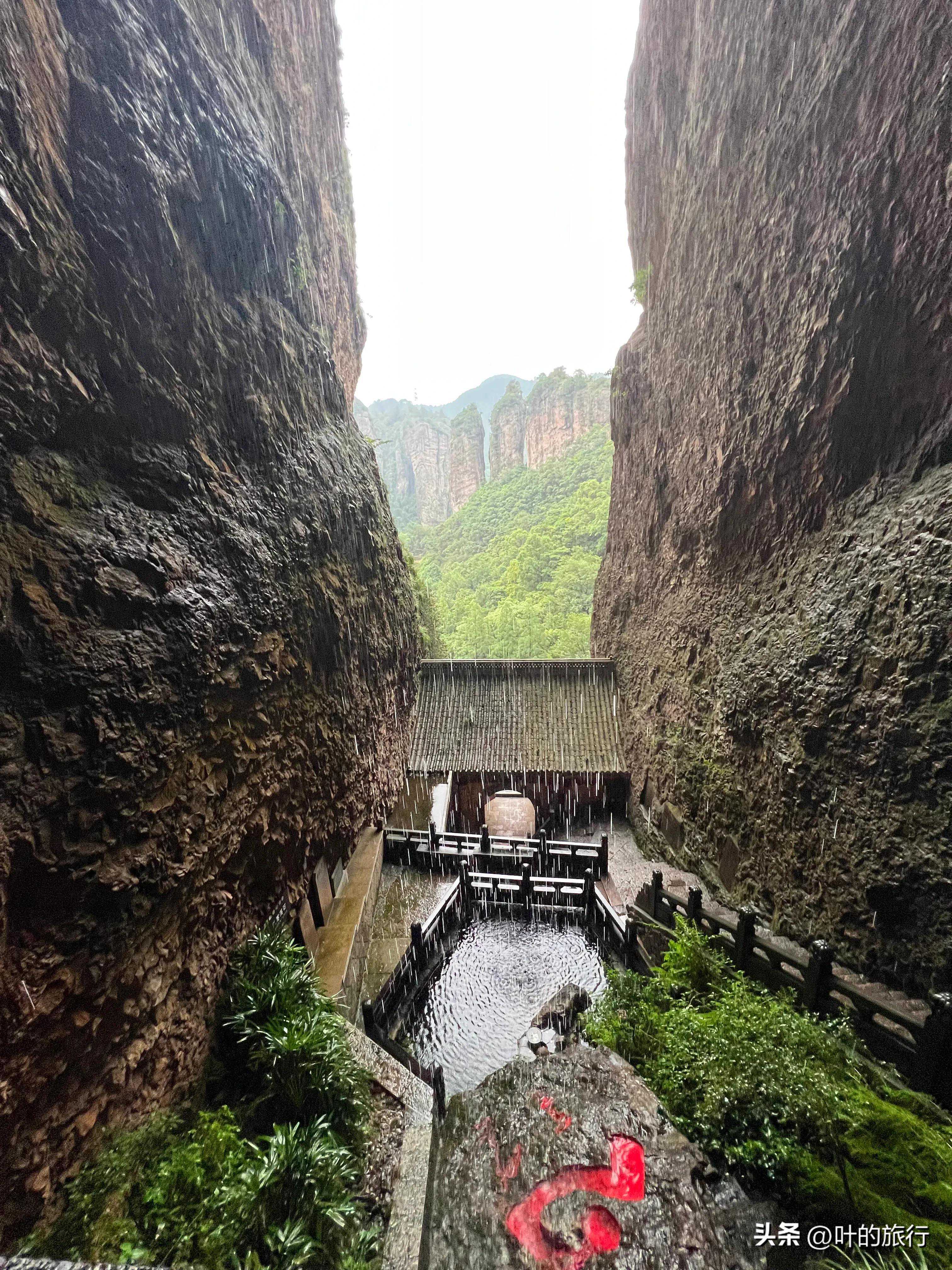 雁荡山森林公园。因为不了解,很少有游人会来此打卡。我也是听民宿老板讲这里很不错,值得打卡,才冒雨在第四天进公园转了转。公园不在联票范围内,需要别购门票。这儿奇峰怪石林立,洞穴众多,湖泊、溪流、飞瀑相得益彰,与三折濗的上折濗是相通的,不只自然风光险秀,里面还有飞拉达、高山滑道等户外游乐项目,适合团队拓展和亲子游打卡体验。