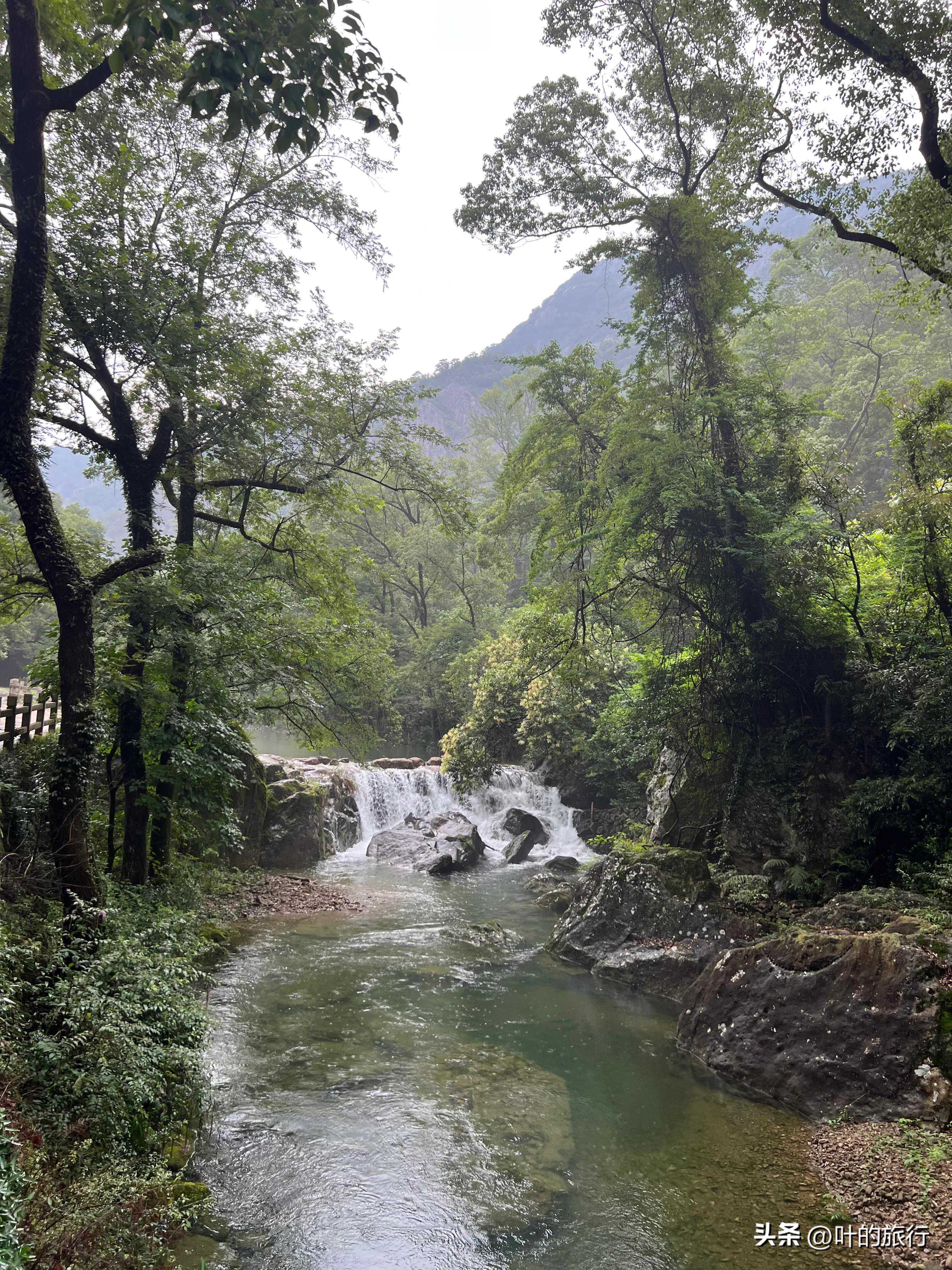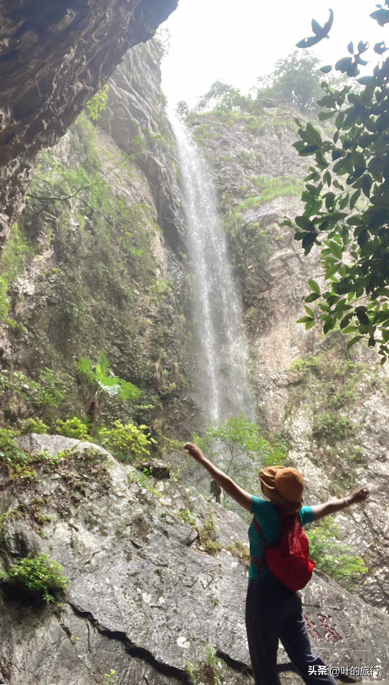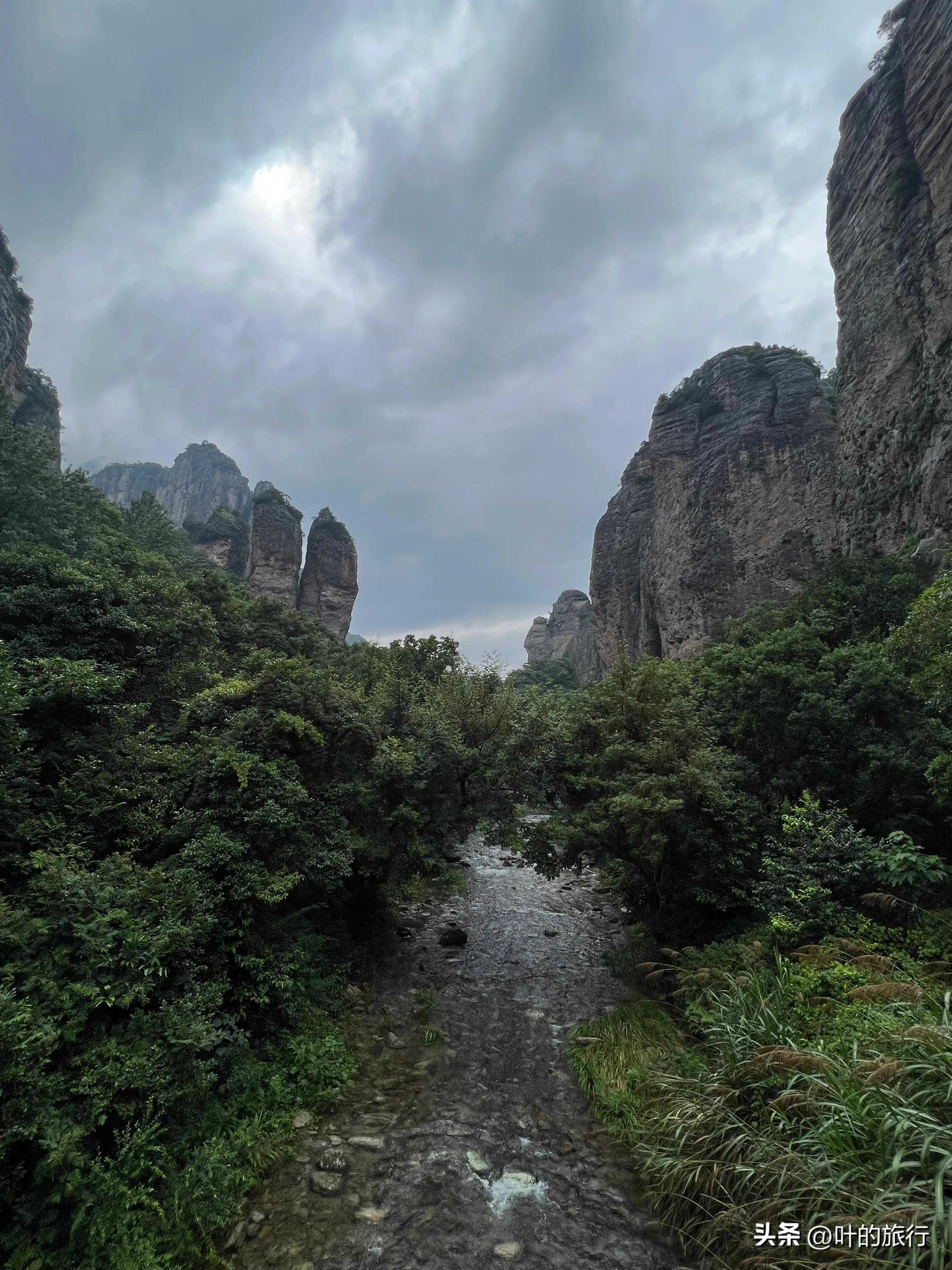 上午游三折瀑。夏天雁荡山爱下雨,所以游人一般只玩下折濗和中折瀑,很少有去上折瀑的。如果是有户外徒步经验的,又有可靠的同行伙伴,天气又好,可以攀登上折瀑看看。景区说明上讲到上折濗单程就得一个半小时,这样意味着往返得将近四个小时。到上折濗的路是石头路,高低不平,又狭窄,有些地方听说很陡峭,所以有雨的很还湿滑,没穿防滑登山鞋的话,慎行。这样省下来的时间,可以沿河边走走,逛逛三星洞和溪边的小景观,这些都是免费的。如果天气好的话,买了联票,也可以去朝阳洞转转。朝阳洞在灵峰景区近邻,因为登山的路是水泥台阶,一下雨青苔湿滑,很危险,所以听说经常关闭,其实景区可以在台阶上铺上那种洗澡池常用的防滑塑料地垫就可以了,这成本也不是太高,又经久耐用。晚上,可以逛逛雁荡山的步行街,听说很热闹的。