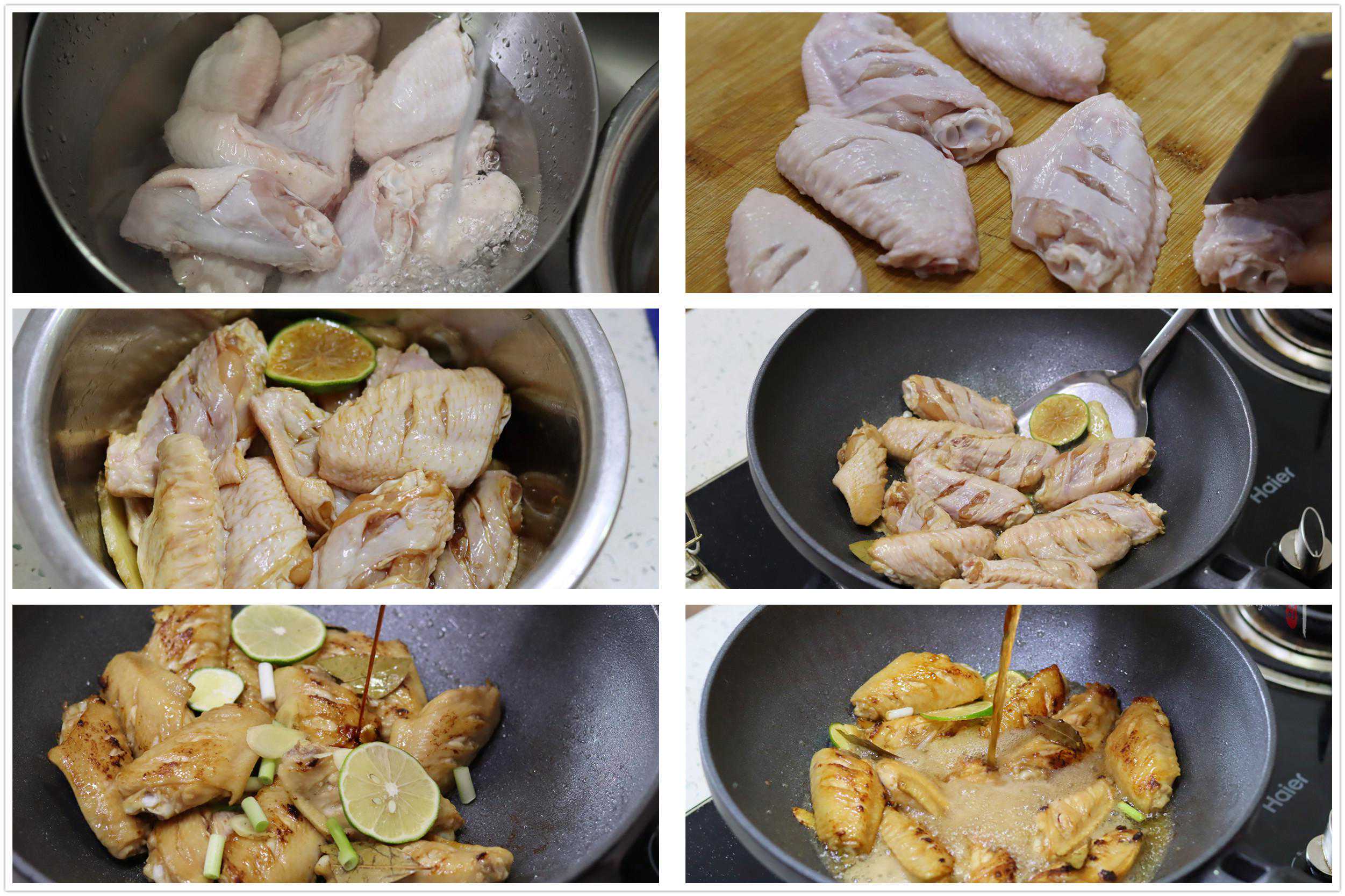 2、鸡翅两面各切三刀,改刀后鸡翅烹饪过后里外的味道就一致了,不会出现夹生、不入味的情况。