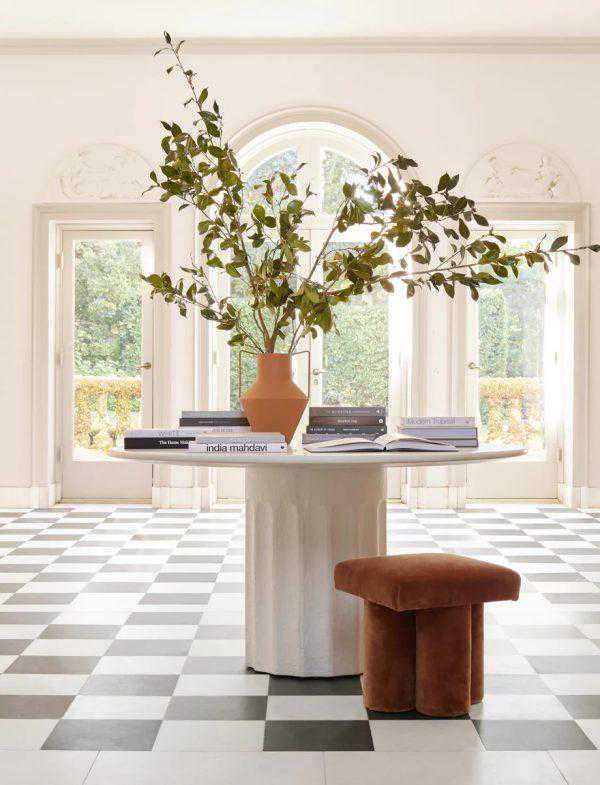 纹理圆形白色厨房桌子:由莎拉·谢尔曼·塞缪尔(SarahShermanSamuel)设计的帅气的多立克圆桌从经典的建筑元素中汲取灵感-所有这些都在纤维石中重新构想,具有温暖和质感的外观。将这张桌子用作宽敞厨房的平衡补充,无论您将其放置在何处,都一定会给人留下深刻的印象。