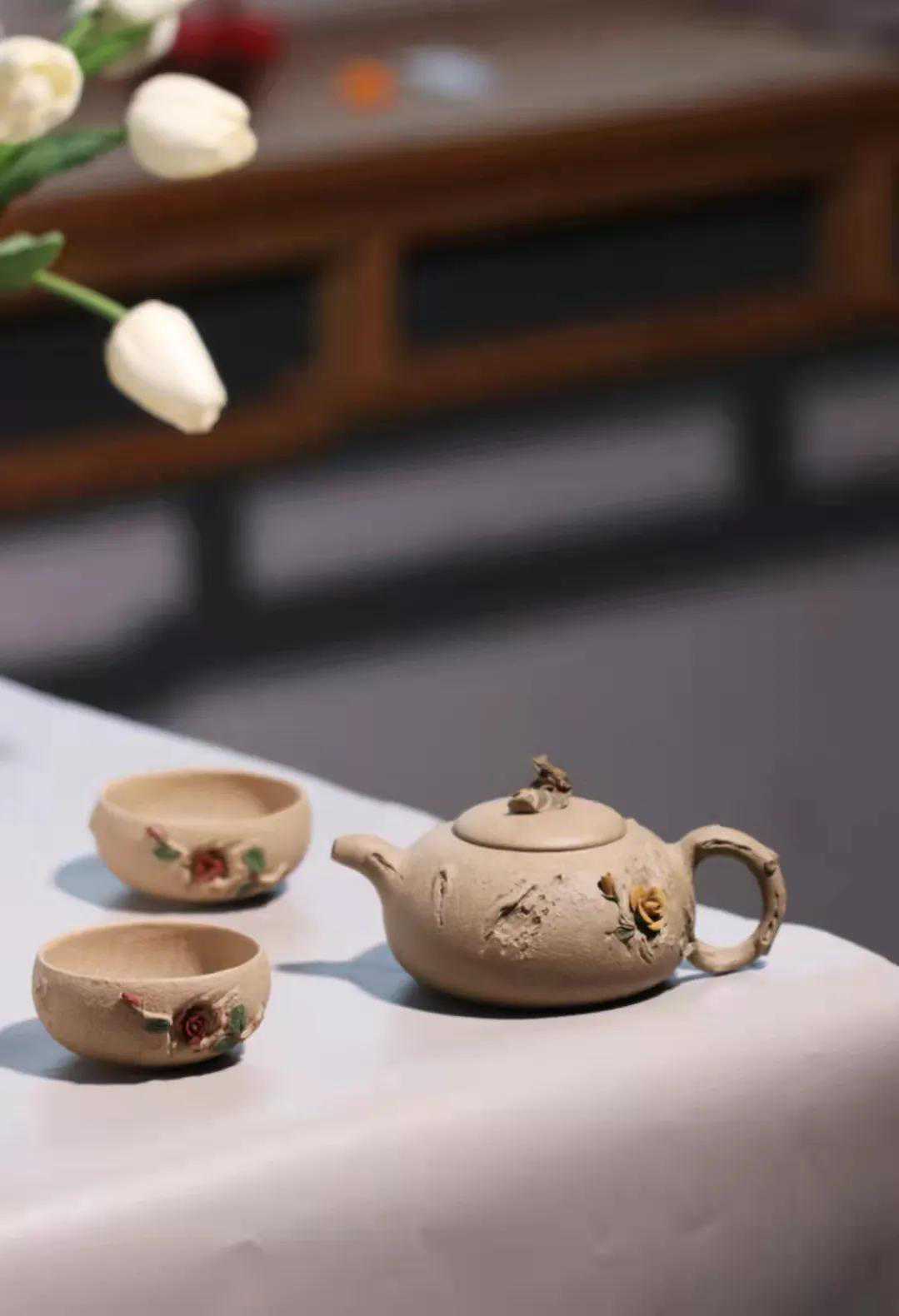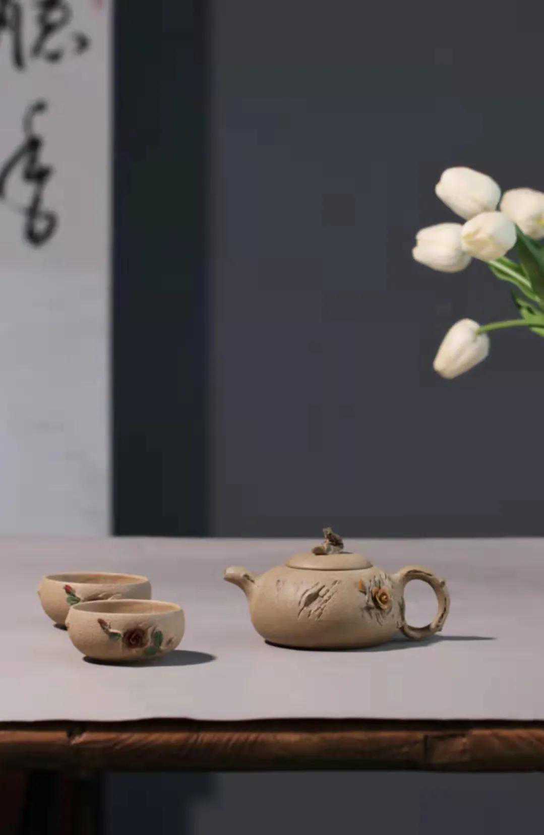 以供春壶作型,壶身塑造一抹自然的肌理之感,