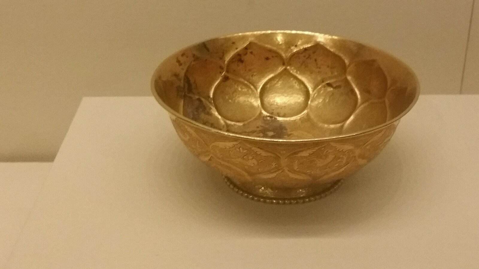 当然了,如此精致的金碗最后的用处更是不凡,因为它是皇室专用。根据《唐摭言》记载,唐文宗在赏赐大臣美酒时“命赐酒二盘,每盘贮十金碗,每碗各容一升许,宣令并碗赐之”。直接证明了金碗的用途,它可是唐朝皇帝的专用,大臣想要莲瓣纹金碗,必须得到皇上的御赐。