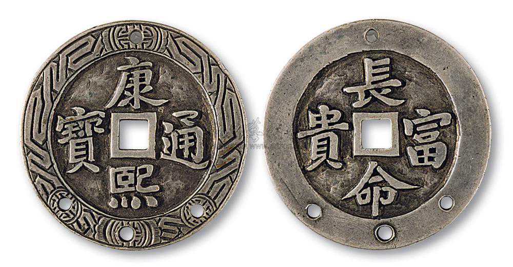 康熙通宝背长命富贵银质花钱