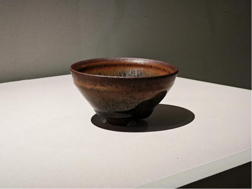 至宋代,“斗茶”之风兴起,在当今影视剧中得见。茶艺与茶具相比前朝更是讲究。茶的色香味,斗茶时的操作技巧,击拂茶汤后的呈现效果和茶沫在盏壁的存留时间,都是斗茶考评的重点。斗茶崇尚纯白茶色,因此能让白色茶墨充分呈现的黑釉盏备受人们推崇。其中,以福建建窑烧造的建盏最为著名。青釉,青白釉茶盏造型相近,也十分流行。建盏的形状口大底小,犹如一个漏斗,足够容纳翻滚而入的汤花;盏壁较厚,以维持恰到好处的温度,保证茶水可以“久热不冷”。阳光下透出的纹路如毛发细密,有兔毫斑,鹧鸪斑等不同品类。