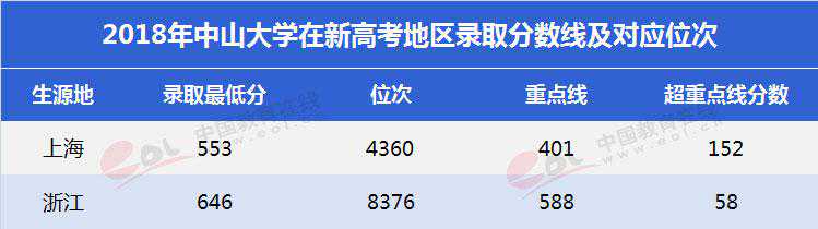 2018年,中山大学从录取线高出重点线分值统计来看:
