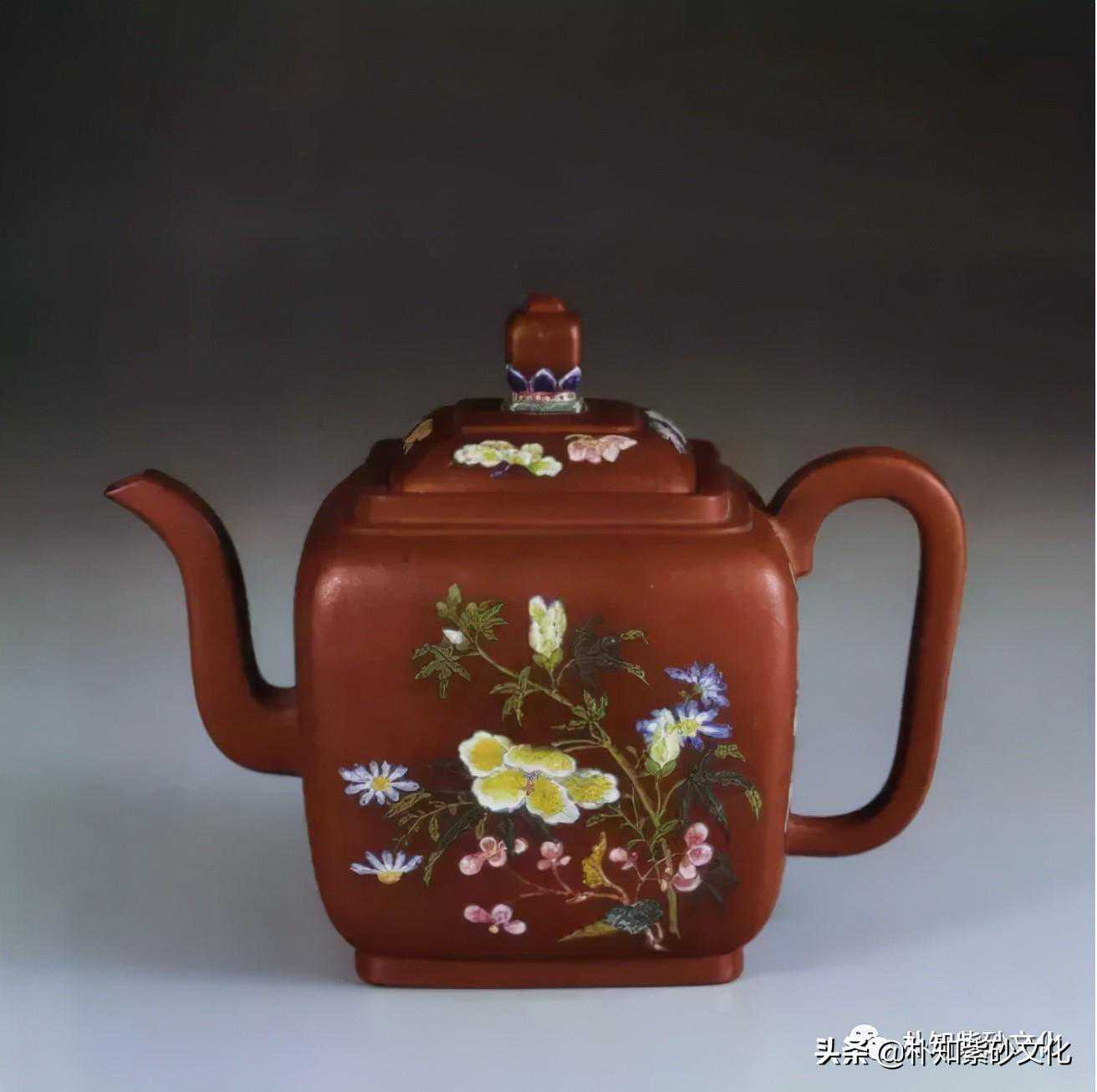 ▲康熙紫砂胎珐琅五彩花卉茶壶
