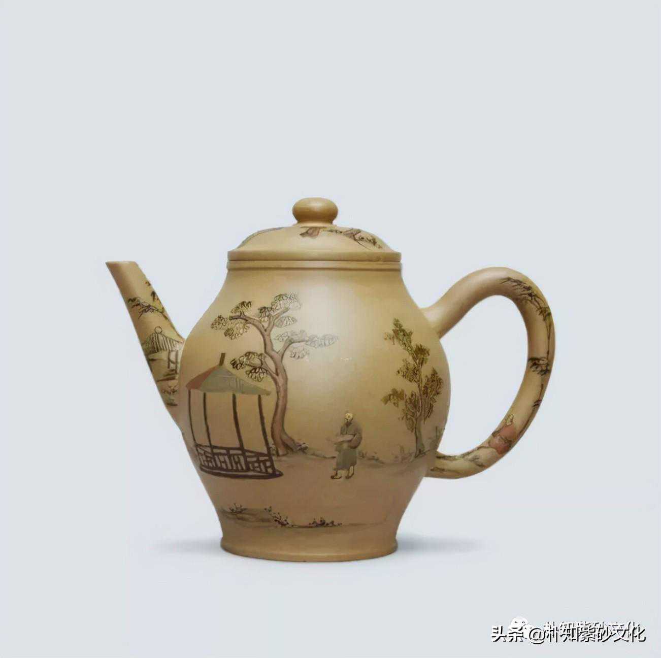 在这里我们特别要说下乾隆时期的泥绘。这时期的紫砂泥绘技法以臻完善,但在乾隆以后,基本失传。乾隆帝按照自己的品茗风格与要求,还特别制作了一批紫砂茶器,主要是堆绘烹茶图、书刻御题诗的茶壶与茶叶罐。