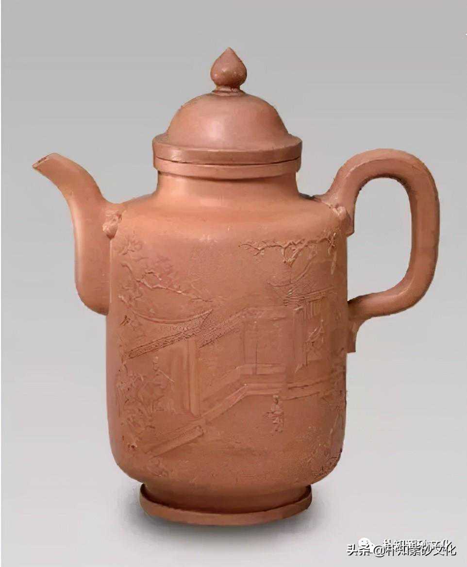 ▲清光绪外销铜提梁紫砂壶清初煎茶道的形成期开始,宜兴紫砂壶就源源不断地输入日本了。《(江苏)陶瓷工业志·特种工艺陶瓷·陶艺名人选录》中记载道:“陈文伯、陈文居兄弟俩,清雍正至乾隆年间人.文伯号寄石山房等所制紫砂花盆,畅销日本,久而不衰.”虽然此处所记录的是紫砂花盆,但据此可以肯定地说,在雍正、乾隆年间紫砂壶出口日本当不在少数.