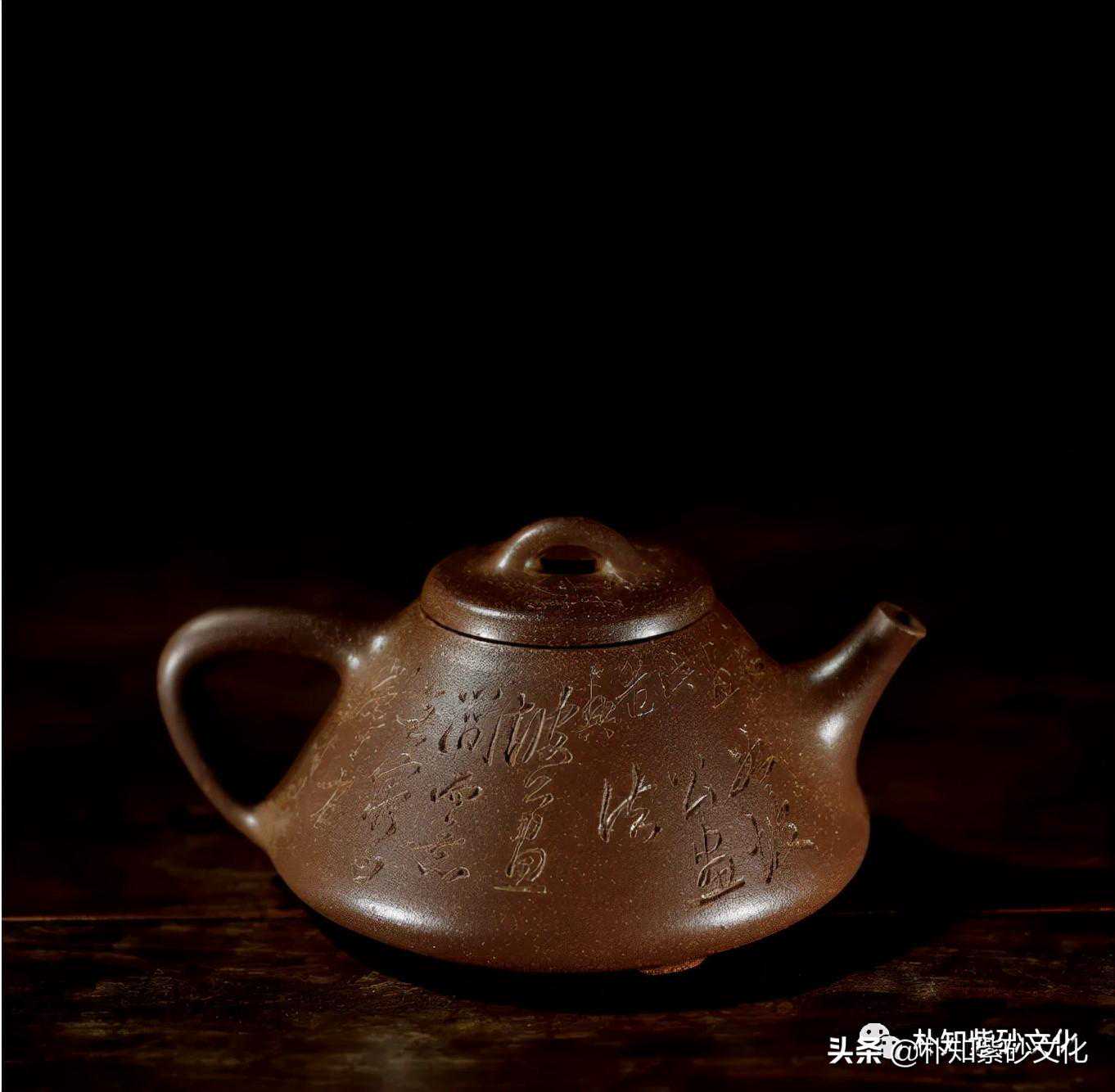 ▲清道光•瞿子冶刻吉安制月壶款紫泥调砂石瓢壶