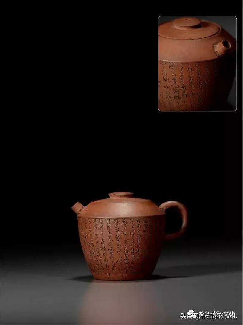 ▲清乾隆御制紫砂描金山水诗文圆壶
