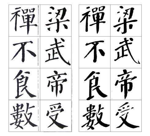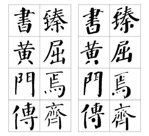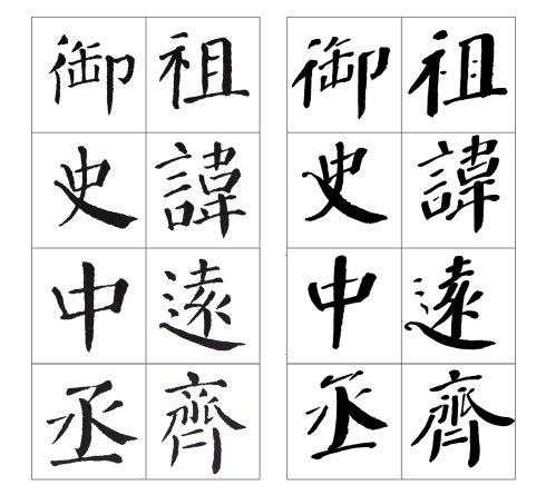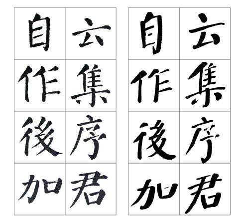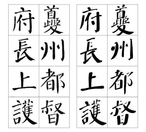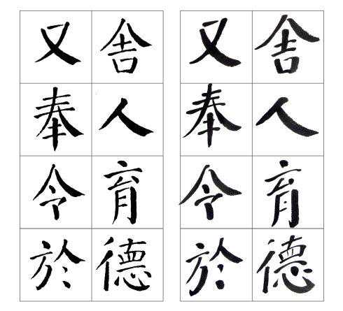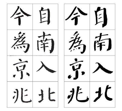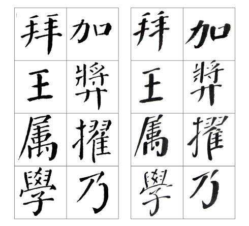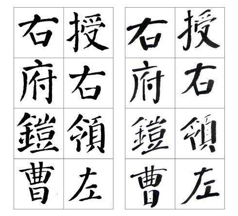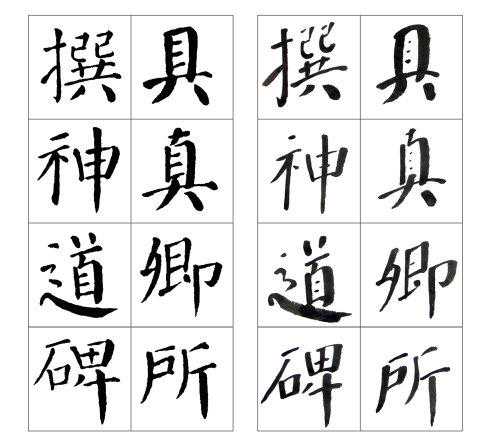 左边是颜真卿《颜勤礼碑》原碑,右边是张守泽所书。