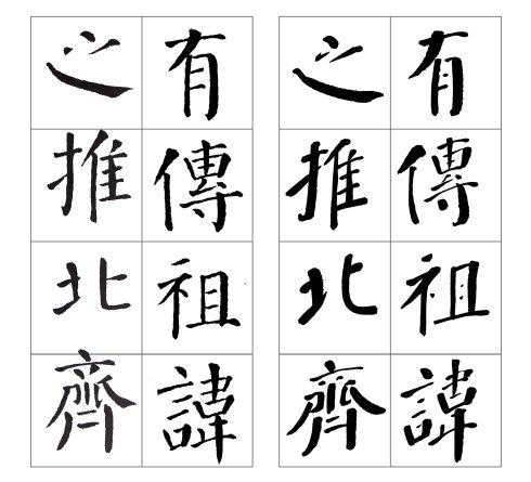 张守泽临颜真卿《勤礼碑》对比图
