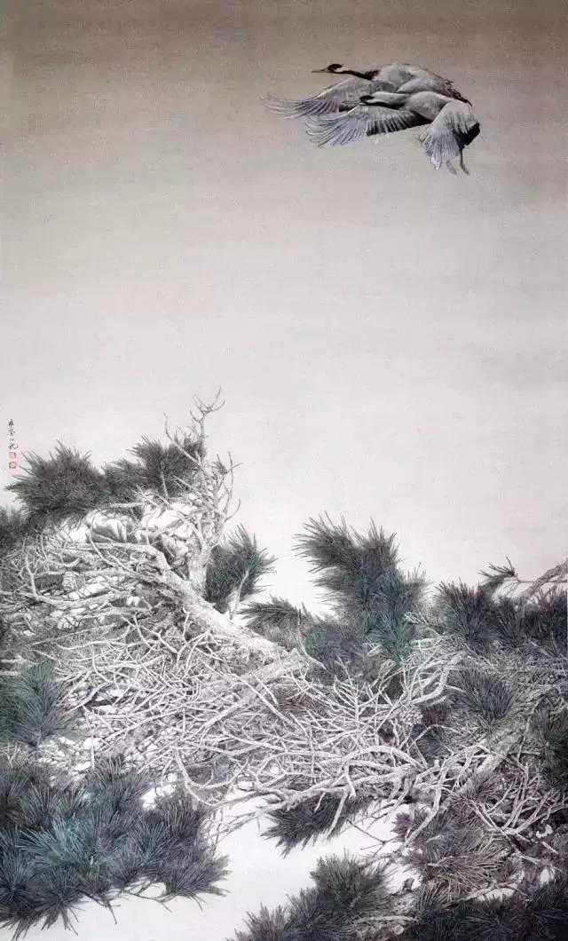 中国画的传统并非单纯的艺术形式。所谓传统,传是流传,代表了艺术的长河;统则是其中具有代表性、统领性的艺术样式。关于中国画未来的发展,我们应将书写的传统、韵律的传统、和诗意的传统继承下来,融入西画元素,并把它变成中国画的笔墨语言,用这种新的笔墨语言去描绘自然。