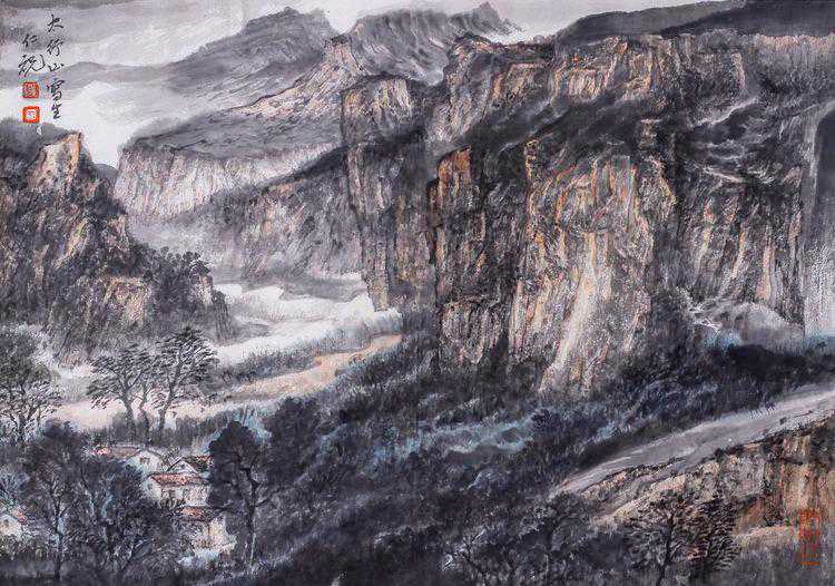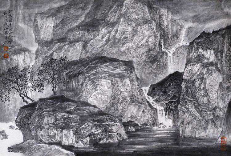 中国画,向以言志抒怀为特点,他的笔墨点线之间充满了人文精神与情怀,所以,在画面上呈现的不再是客观世界的“存在自然”,而是主观世界的“内心自然”,如此,中国画艺术形成了讴歌“人与自然”母题的永恒精神文本,并在精湛、独特与虚拟的空间结构中,“写意”着千古梦境、无限乡愁和灵魂象征。我看于仁祝的作品,却有如此感觉。于先生画山水,气势磅礴,意象表现,坦荡磊落,清峻苍茫,显现了画家的气质、秉性与品格,因为,只有在思接千载、视通万里的精神高度上,才能如此立象尽意、遥情寄物的自由胸怀,在有限中表现无限,并化实为虚,化形为神,以内美修能取胜,使笔端山水、花鸟升华为人格、精神象征,用以传达生命之音。