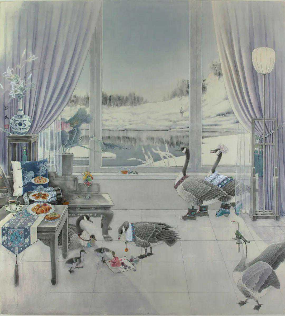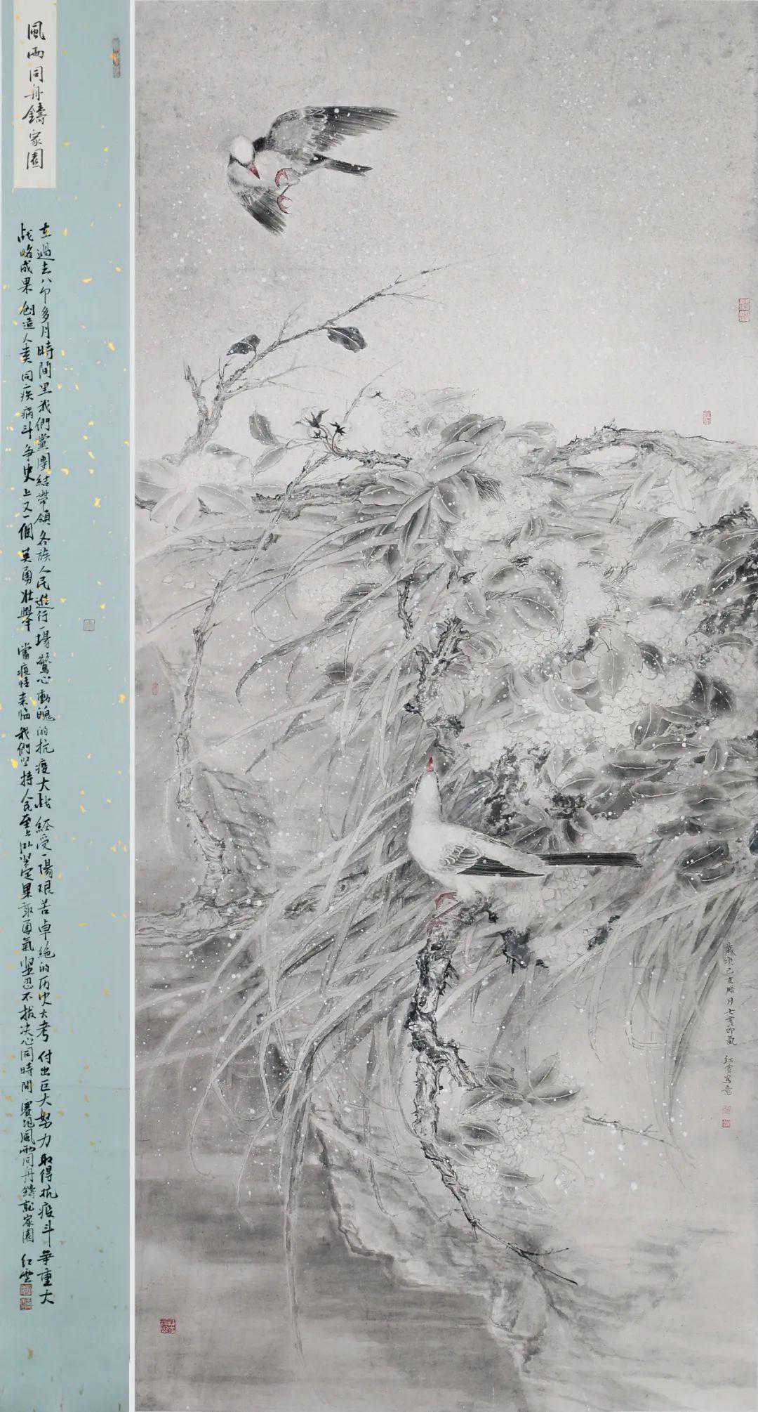 天津市中国画学会于2016年成立,旨在坚定“文化自信”,立足于深厚的民族文化传统,推动天津中国画创作的繁荣与发展。此次展览以学会画家为主体,集中呈现了天津当代花鸟画的创作状态,相信必能借此相互砥砺、品评借鉴,进一步促进天津花鸟画创作、教育及研究取得丰硕的成果。