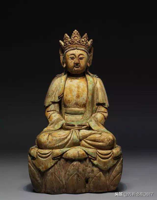 相比行情火爆的铜鎏金佛像,木造像显得有些低调。然而,经过几百上千年的尘灰、空气和水分的相互作用,及置放环境的变迁,木造像表面形成的包浆与皮壳,有着温存的旧气。古拙而有斑驳感,能够直抵人心。