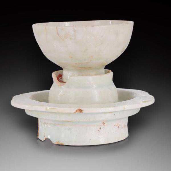 值得一提的是,从博物馆展示的一件南宋时期的瓷质垫钵,可直接见出这一时期装烧工艺的变化。这是属于泥胎入窑装烧中的一种窑具。南宋,随着优质上层瓷石的枯竭以及“兴烧之际,按籍纳金”税制的实行,湖田窑不得已采用了北方定窑的覆烧工艺,即把坯胎覆转过来装在多级垫钵或组合方式支圈的窑具内焙烧。从当时景德镇民窑所面临的处境来看,垫钵的使用是景德镇民窑装烧工艺史上的一次重大变革。这种装烧工艺的优点是产量高、变形少。缺点是器物口沿无釉,“不堪用”,所以一些达官贵人就在口沿镶金,镶银或铜。