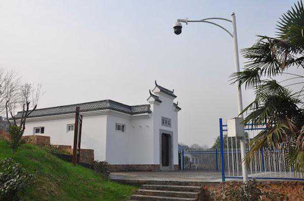 澎湃新闻记者随工作人员向乌鱼岭山坡走去,不过几分钟,在绿树竹林间,坡顶一座仿徽派建筑的保护房屋随之出现在观者视线。