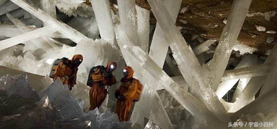 ,这个巨大的水晶洞穴,就埋藏在,奇瓦瓦沙漠?那加山脉下,1000英尺的深处,2000年,一家工业公司的两名矿工在挖掘一条地下隧道时发现,那是个奇特的洞穴,里面含有许多巨大的水晶柱,这个洞穴中含有,世界上最大的天然水晶,帮我打十一米,重达55吨,西班牙,大学的,加西亚鲁特斯说,这真是自然奇观啊!