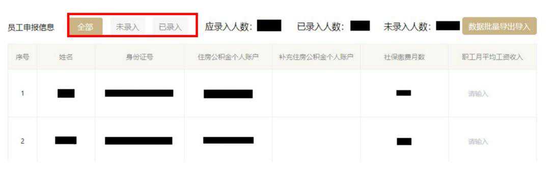 (2)对于数据填报后,系统提示仍有漏报的,可通过在界面选择“未录入”查询对应人员,并进行补充录入。