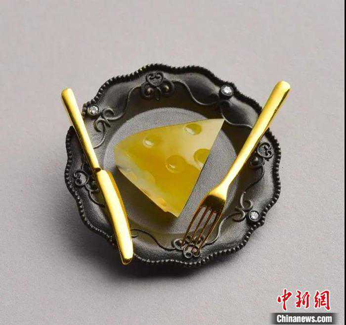 名为“民以食为天”的玉石作品在四会展出。四会市珠宝玉石首饰行业协会供图