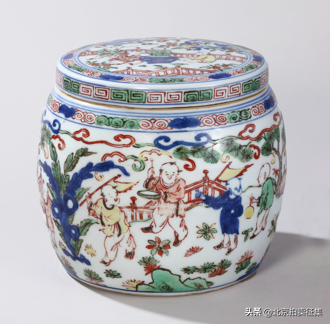 明嘉靖青花矾红加黄彩青白礼贵鱼藻纹大罐