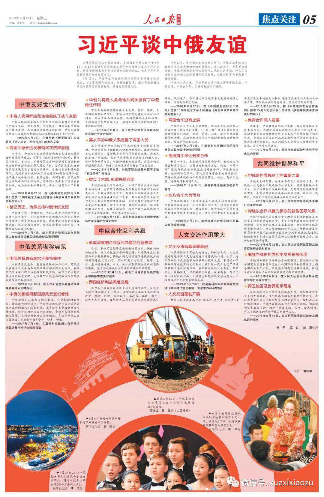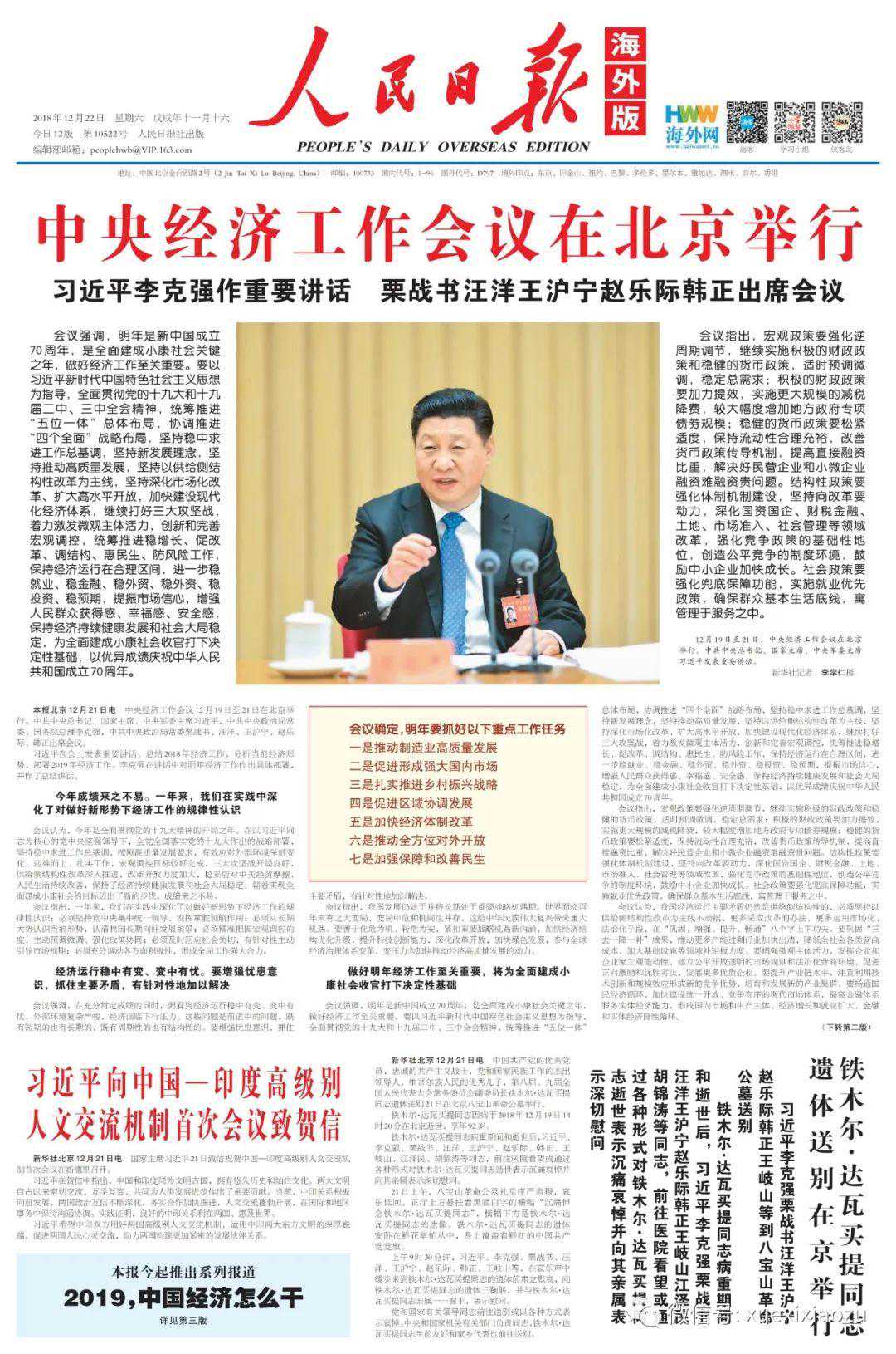12月12日,海外版头版刊发导读,介绍本报独家采写的《习近平十一篇署名文章里的中外友谊》。文章回顾2018年习近平主席4次踏出国门,脚步遍及亚非欧拉及大洋洲13个国家。在对阿联酋等11国进行国事访问前夕,习近平主席均在到访国重要媒体发表署名文章。这些文章里有许多动人的中外交往故事,充满深厚的中外友谊。