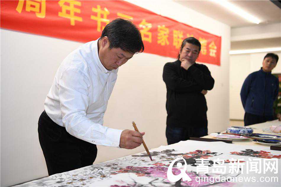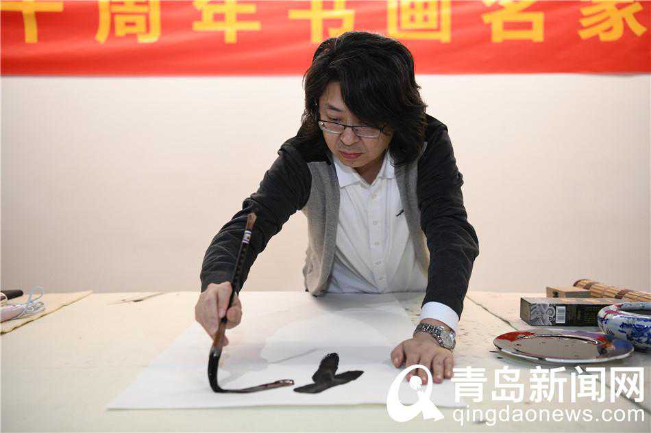 青岛市文联主席、市美协主席王绍波带领书画家现场挥毫泼墨。