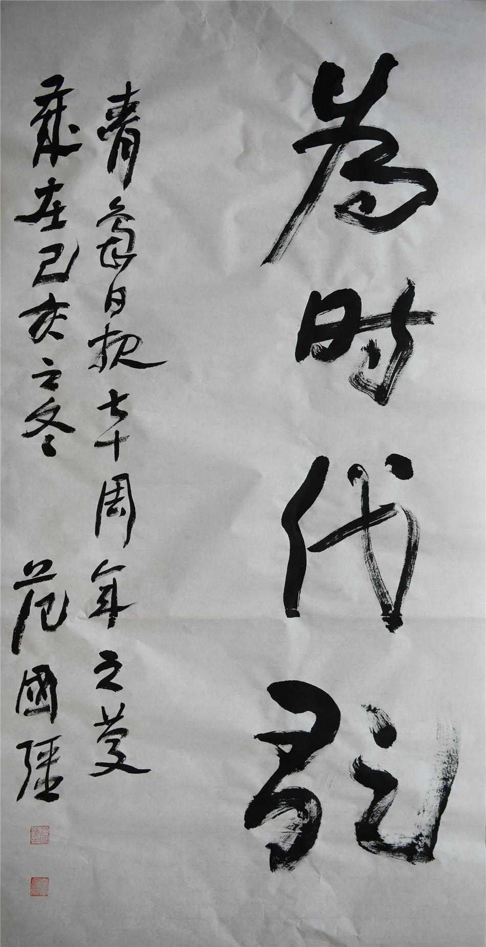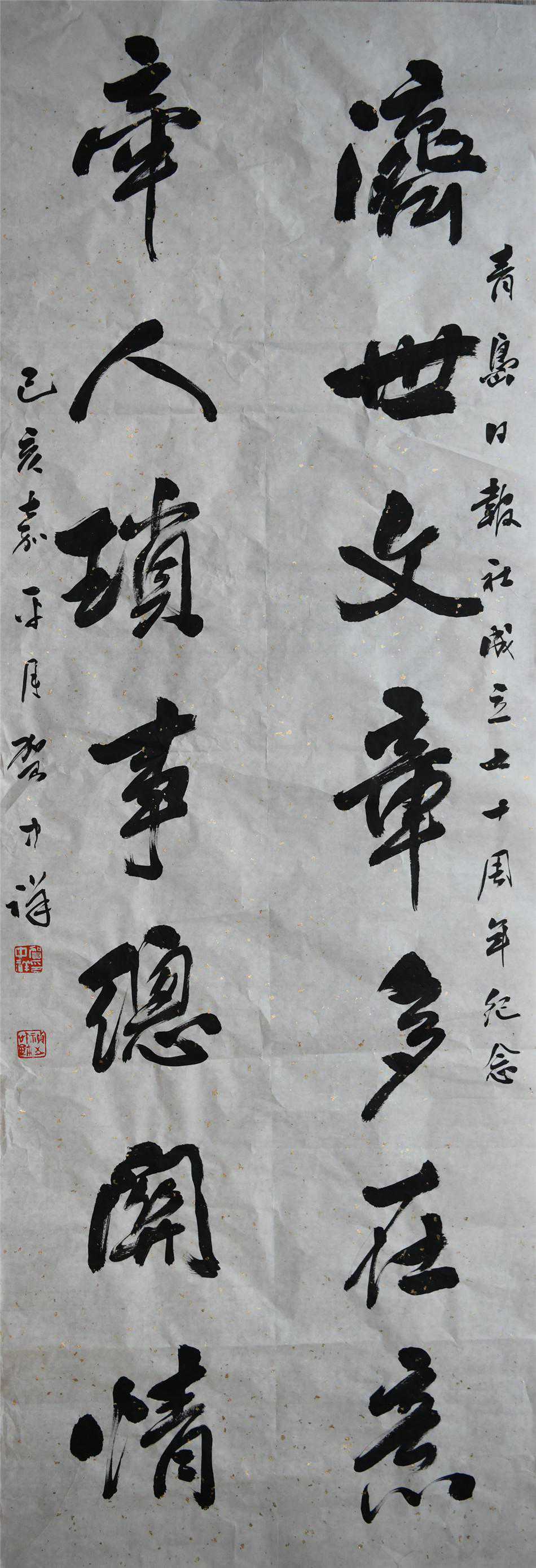 山东省书协副主席、青岛市书协主席范国强书写对联。