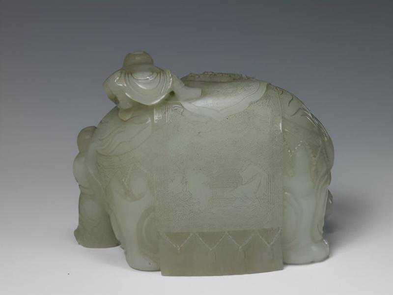 玉器表面琢碾带有叙事性和图画性装饰图案的做法,始于宋代。明代玉图画更为盛行,多将山水、人物、花鸟、典故、诗文意境移植到玉质器皿的表面作通景式的表达,但这种表现多是平面的。玉山子作为室内陈设之一,在清代十分流行,既有硕大无朋重达万斤的大禹治水图山子,也有精巧雅致可收纳于百事件中者,大小适中的案头陈设山子更是不胜枚举。玉山子多取材绘画、诗文、历史故事,精心布局,立体展示,有的更镌刻诗文、印章,成为集诗、书、画、印于一体的极富文人雅趣的三维雕刻艺术。