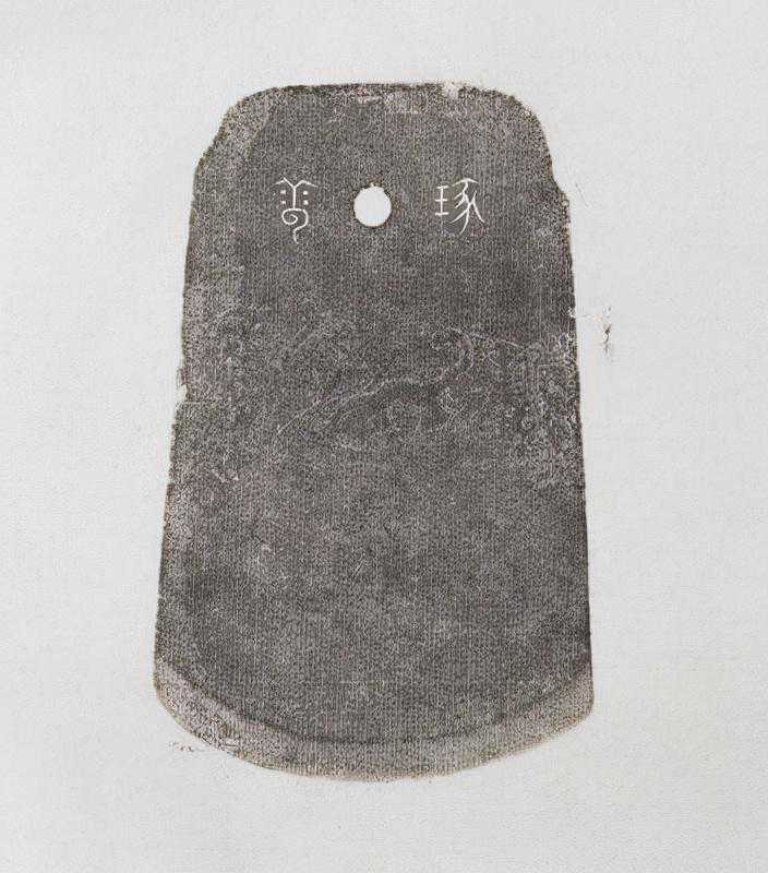两树间留白处镌刻直行行书“羲之爱鹅”四字点题。图、纹均浅浮雕。