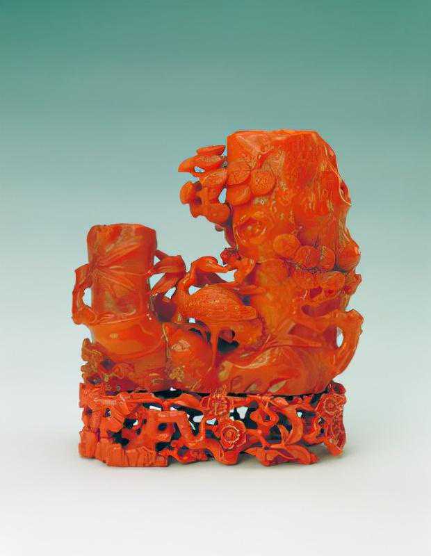 珊瑚是海中的珊瑚虫分泌出的石灰质骨骼堆积而形成的,呈枯干的树枝状。在古代,珊瑚与黄金同价,极受人们的珍视。珊瑚虫分雌雄,可活十几年。珊瑚干径一寸、高一尺者即为好品种,径二寸、高三尺者便很名贵。珊瑚细腻柔韧,可做非常纤细的饰品。在清代,珊瑚是二品官阶的顶戴标志。珊瑚还可以入药。