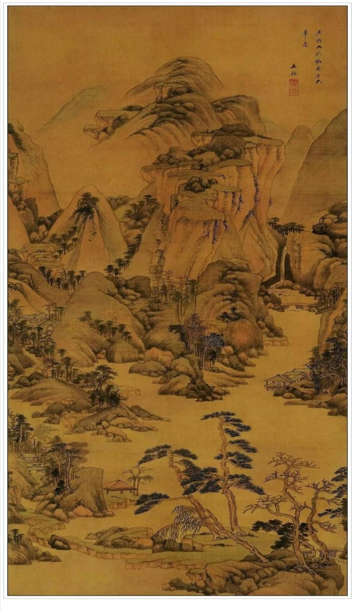 清朝早期王鉴《岭上白云图》绢本设色143.7现藏于北京故宫博物院。