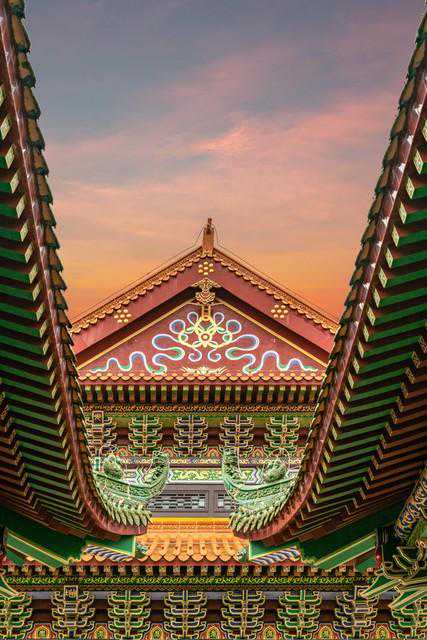 建筑色彩有明确的高低之分。最高等级的颜色是黄色,其次是红色,再次是绿色和蓝色。