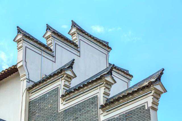 歇山顶有九脊,顶是弯曲的,呈人字形,有两个斜面。