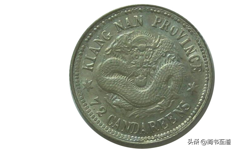 正面满文中心点。背面配老江南七分二厘的有圈龙,英文“CANDAREENS”字体较大,72数字之间有一小圆点。