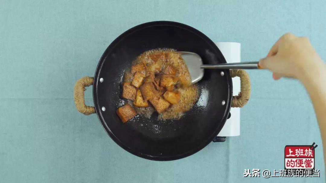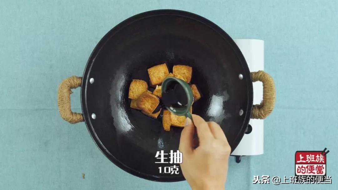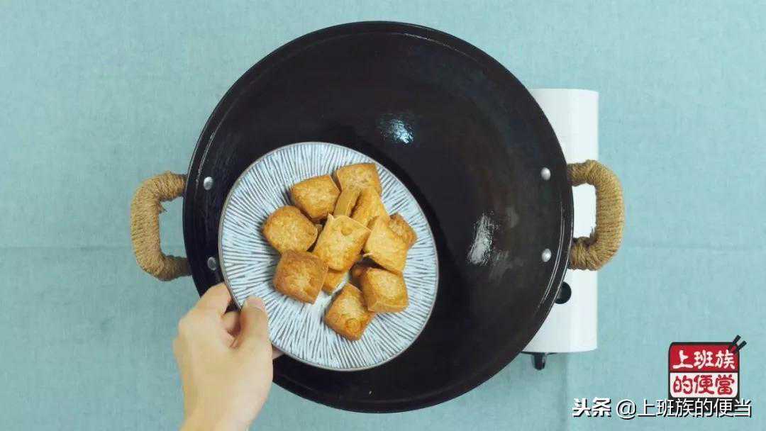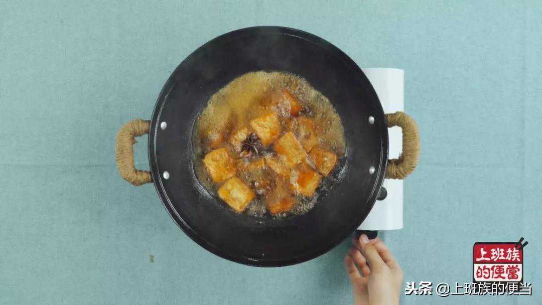 重新起锅,放入炸好的豆腐块
