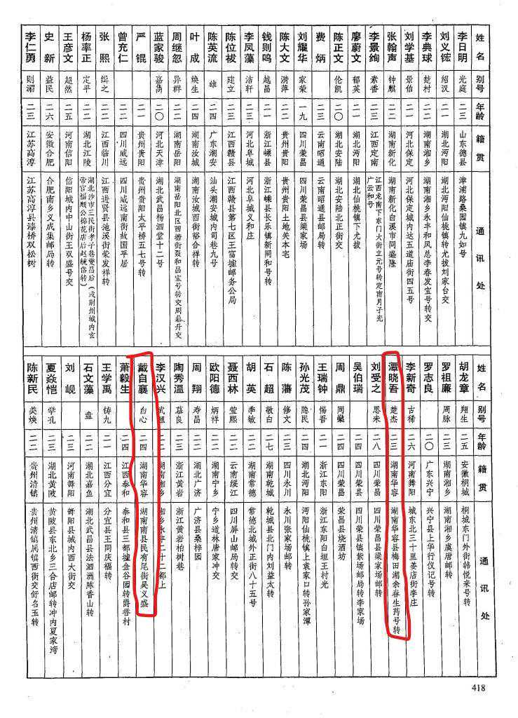 潭晓吾,湖南华容人,黄埔军校第八期步兵科第二队。1907年生,别号:楚杰,籍贯:湖南华容,部别:黄埔军校第八期步兵科第二队,其他方面没有记录,入校通信地址:湖南华容县梅田湖余春生药号转。