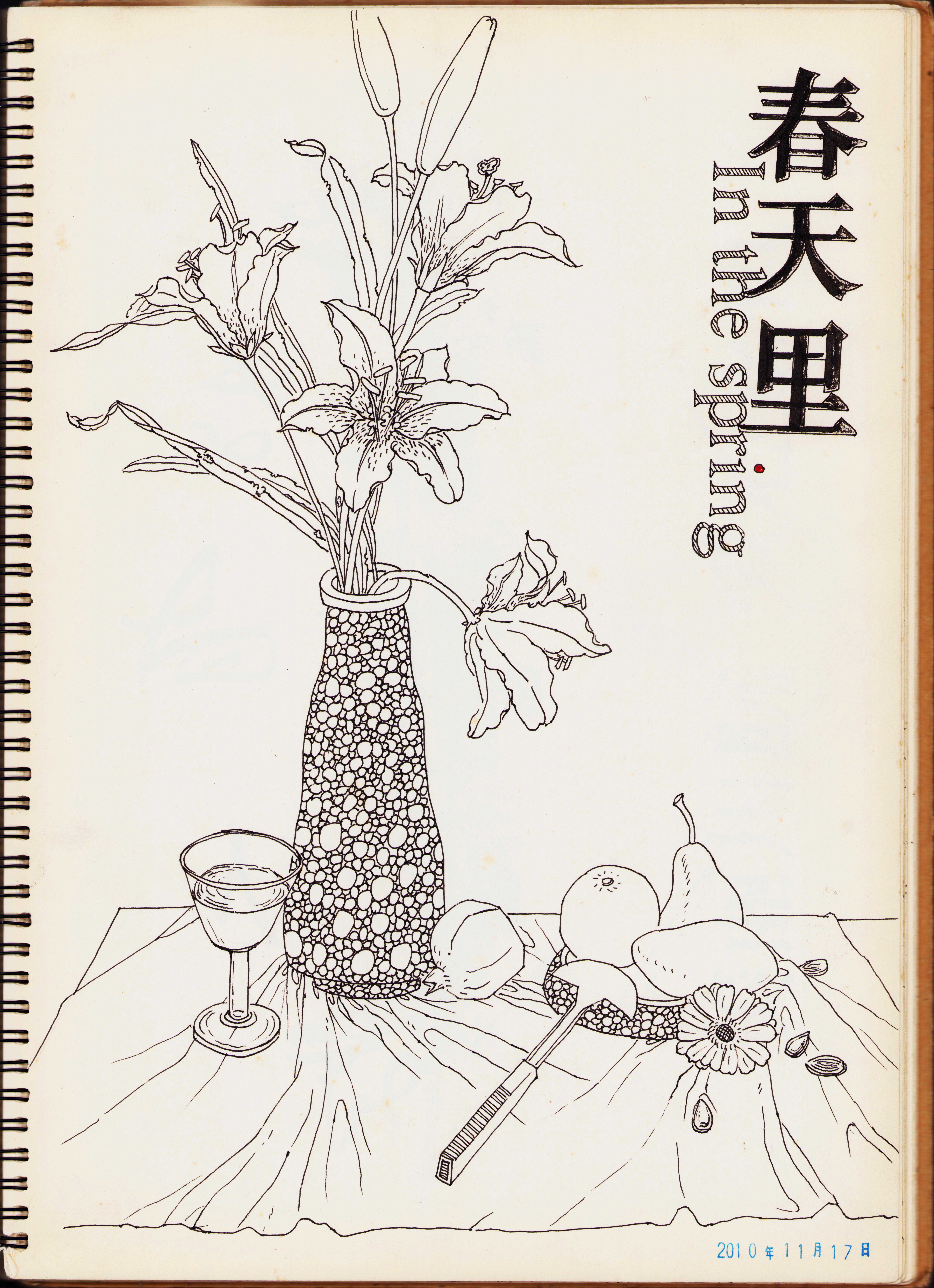 这里呈现的16幅钢笔画,是我画在一本素描本上的练习中挑选出来的,包括透视图、石膏几何体、写生花卉、动植物、工业产品、风景等内容,是课堂给学生作示范用的,大部分都在2013年前所画,教学年级从2010级到2013级。现在,纸张已发黄了,但是还能想起与同学们在课堂上一起度过的愉快时光。发在这里,也算是点滴的回顾与总结,请大家批评指正!