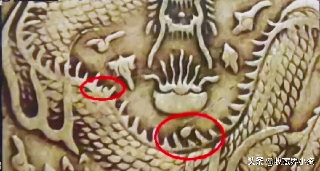 4、大字实眼龙双短云版:此版最少,左上龙爪上方云朵和龙身右下云朵都被修短。