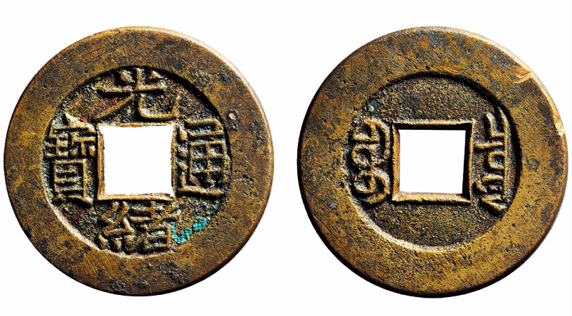有人好奇,光绪是宣统的前一个年号,明明是光绪通宝先铸造的,为什么要用光绪通宝宣统手这样的称号呢?这个就和钱币的认知有关系了,光绪通宝的大样分为很多种,有阔缘小字版的,有方口通,有角头通,还有就是宣统手大样。