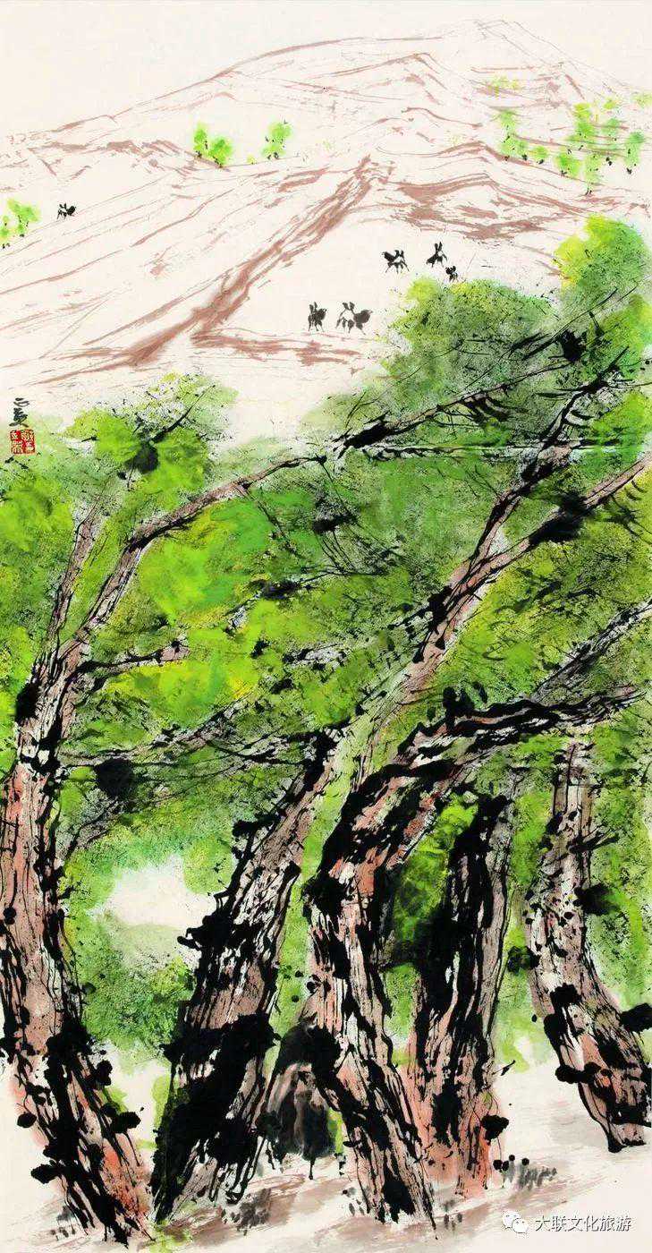 然而,联系起来看,陈克永的大山大水,却以拙厚繁密的笔墨,夸张了折落的大山的方中有圆有力度,又以干粗叶密树冠浑圆层叠的张力,造成了前人所无的浑厚雄强和波澜壮阔,呈现了自树一帜的绘画语言风格。
