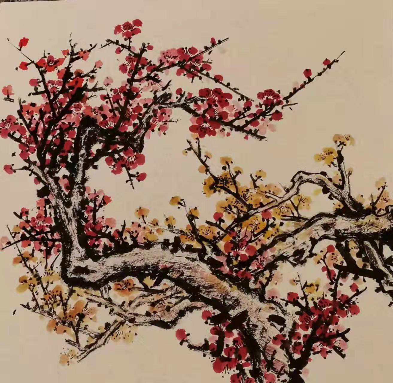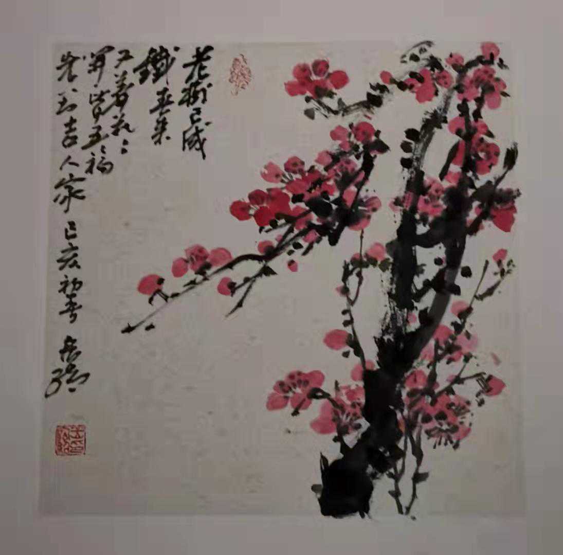 无论篇幅大小,他的作品均表现出了“铁骨傲冰雪,幽香透国魂”的精神,融合传统文化艺术和现代审美意趣于一体,达到“我是梅花梅是我”的至高艺术境界。