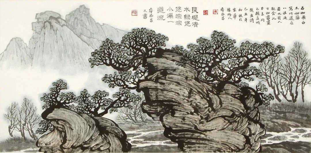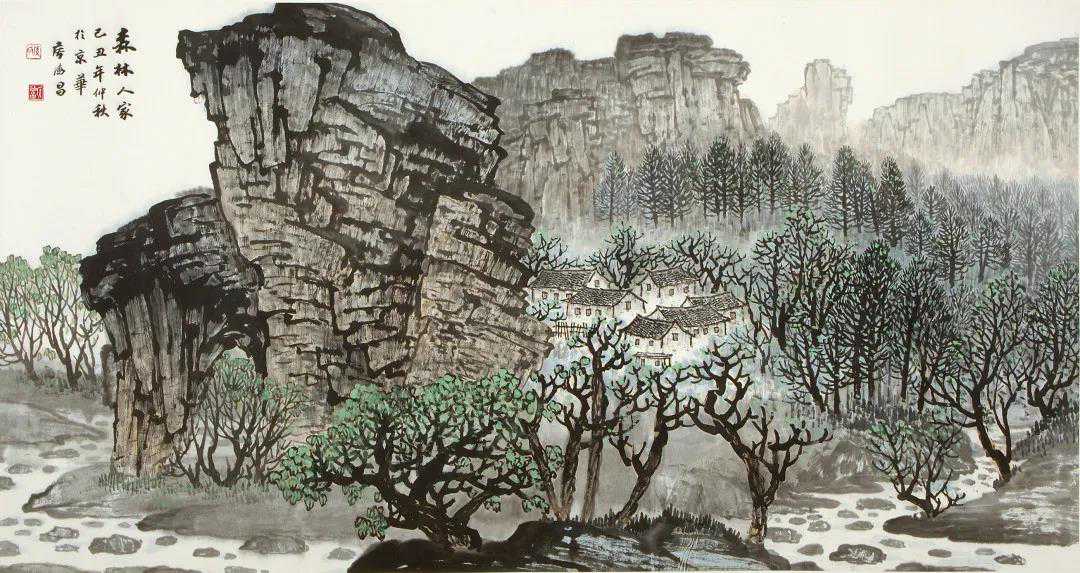 侯德昌所作画稿,以线描胜,或繁或简,用线精练概括。山石树木姿态优美,大小、长短、疏密组织有德昌序,结构谨严。侯德昌以传统为师,以自然为师,常常驻足于松林丘壑中,静思冥想,看山不厌。侯德昌能将自然的优美和壮美相结合,同时对景物取舍有度,兼具民族风格和时代特点。侯德昌山水画虚实相生,动静相宜,刚柔相济。情思所寄,令人如临其境,回味无穷。